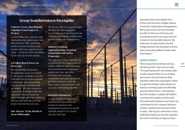 Extensive Resources As part of MYR Group , Great Southwestern possesses the technical , financial and managerial resources to install multiple projects of virtually any size and type .