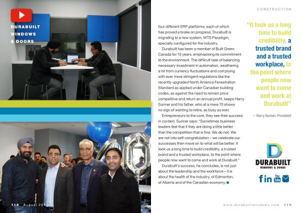Entrepreneurs to the core , they see their success in context . Sunner says : “ Sometimes business leaders feel that if they are doing a little better than the competition that is fine . We do not . We are not into self-congratulation – we celebrate our successes then move on to what will be better . It took us a long time to build credibility , a trusted brand and a trusted workplace , to the point where people now want to come and work at Durabuilt .”