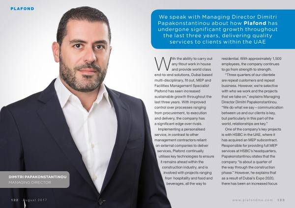 We speak with Managing Director Dimitri Papakonstantinou about how Plafond has undergone significant growth throughout the last three years , delivering quality services to clients within the UAE