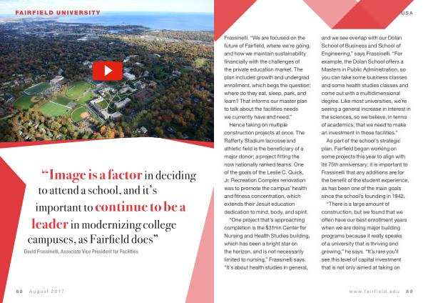 Frassinelli . “ We are focused on the future of Fairfield , where we ’ re going , and how we maintain sustainability financially with the challenges of the private education market . The plan includes growth and undergrad enrollment , which begs the question : where do they eat , sleep , park , and learn ? That informs our master plan to talk about the facilities needs we currently have and need .”