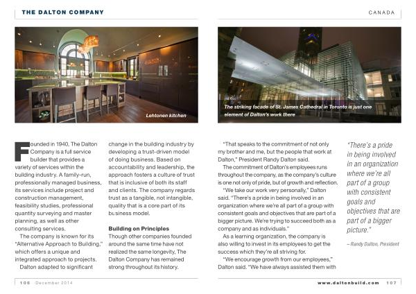 Dalton adapted to significant change in the building industry by developing a trust-driven model of doing business . Based on accountability and leadership , the approach fosters a culture of trust that is inclusive of both its staff and clients . The company regards trust as a tangible , not intangible , quality that is a core part of its business model .