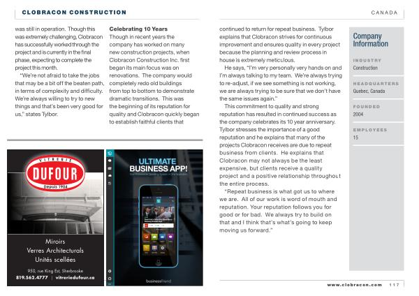 canada continued to return for repeat business . Tylbor explains that Clobracon strives for continuous improvement and ensures quality in every project because the planning and review process in house is extremely meticulous .