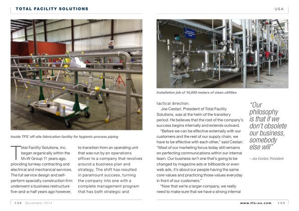 Inside TFS ’ off-site fabrication facility for hygienic process piping