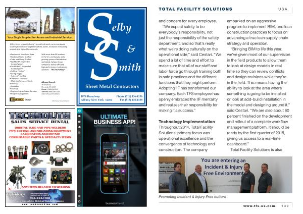 Technology Implementation Throughout 2014 , Total Facility Solutions ’ primary focus was operational excellence and the convergence of technology and construction . The company embarked on an aggressive program to implement BIM , and lean construction practices to focus on advancing a true lean supply chain strategy and operation .