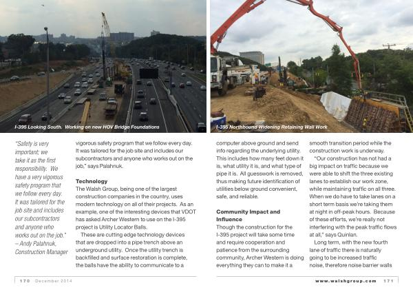 Technology The Walsh Group , being one of the largest construction companies in the country , uses modern technology on all of their projects . As an example , one of the interesting devices that VDOT has asked Archer Western to use on the I-395 project is Utility Locator Balls .