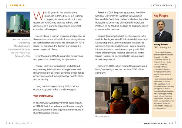 Svend Haug , a Danish engineer and pioneer in the manufacture and installation of storage tanks for hydrocarbons founded the company in 1949 . Since its inception , the factory participated in major projects in Peru .