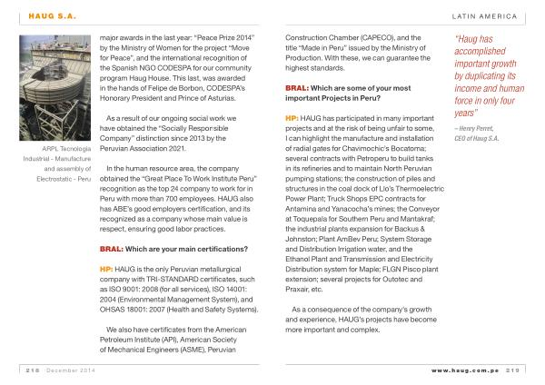As a result of our ongoing social work we have obtained the “ Socially Responsible Company ” distinction since 2013 by the Peruvian Association 2021 .