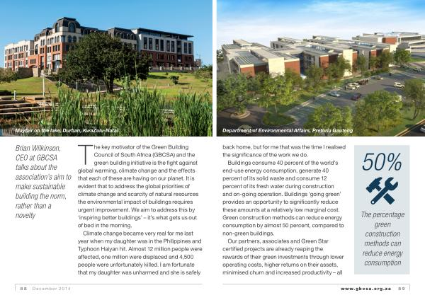 Brian Wilkinson , CEO at GBCSA talks about the association ’ s aim to make sustainable building the norm , rather than a novelty