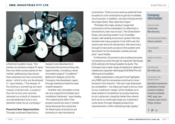 “ Another new innovation is that we now supply Erico / Caddy duct installation hardware ,” says Hadley . “ It ’ s widening the offer in the product sense but also in market sense because the customers for these types of products are primarily on-site mechanical
