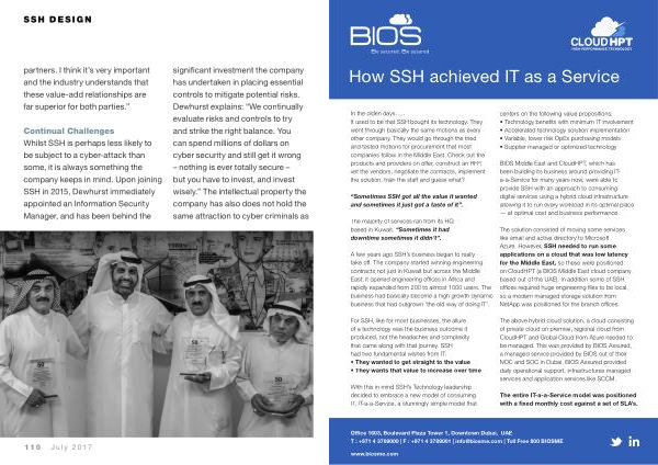 Continual Challenges Whilst SSH is perhaps less likely to be subject to a cyber-attack than some , it is always something the company keeps in mind . Upon joining SSH in 2015 , Dewhurst immediately appointed an Information Security Manager , and has been behind the significant investment the company has undertaken in placing essential controls to mitigate potential risks . Dewhurst explains : “ We continually evaluate risks and controls to try and strike the right balance . You can spend millions of dollars on cyber security and still get it wrong – nothing is ever totally secure – but you have to invest , and invest wisely .” The intellectual property the company has also does not hold the same attraction to cyber criminals as