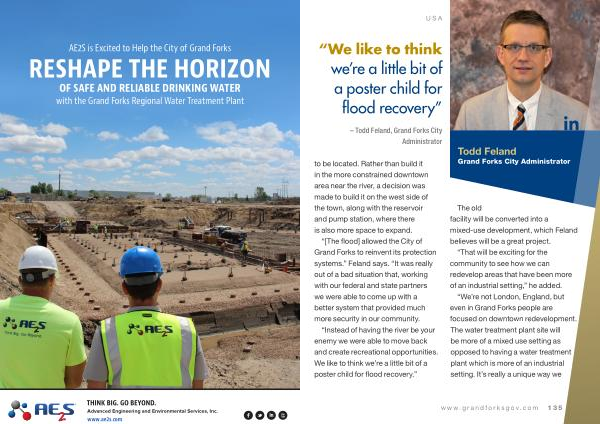 “ We like to think we ’ re a little bit of a poster child for flood recovery ” – Todd Feland , Grand Forks City Administrator