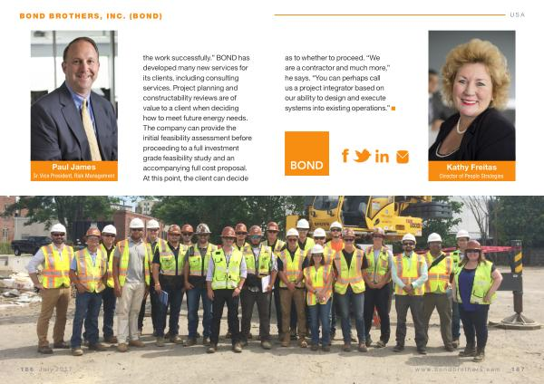 Paul James Sr . Vice President , Risk Management the work successfully .” BOND has developed many new services for its clients , including consulting services . Project planning and constructability reviews are of value to a client when deciding how to meet future energy needs . The company can provide the initial feasibility assessment before proceeding to a full investment grade feasibility study and an accompanying full cost proposal . At this point , the client can decide