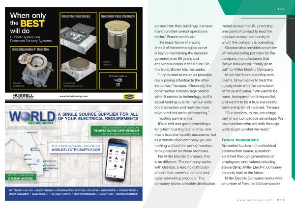 Future foundations As market leaders in the electrical construction space , a position solidified through generations of employees , core values including stewardship , Miller Electric Company can only look to the future .