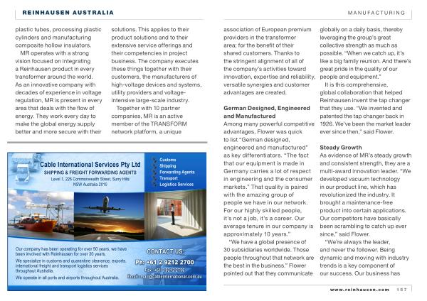 MR operates with a strong vision focused on integrating a Reinhausen product in every transformer around the world . As an innovative company with decades of experience in voltage regulation , MR is present in every area that deals with the flow of energy . They work every day to make the global energy supply better and more secure with their solutions . This applies to their product solutions and to their extensive service offerings and their competencies in project business . The company executes these things together with their customers , the manufacturers of high-voltage devices and systems , utility providers and voltageintensive large-scale industry .