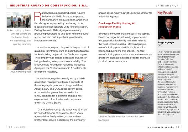 Jorge Aguayo graduated as an industrial engineer from the Dominican Republic ’ s Mother and Teacher Pontifical Catholic University , where he also obtained a Master ’ s in HR management . Aguayo has also managed logistics for a Dominican tobacco grower . In the United Sates , he earned a Master ’ s in business management from Northwestern University ’ s Kellogg School of Management ; and also in the States he worked as a consultant for ZS Associates ’ Latin American branch . In 2002 he went back to Industrias Aguayo and in late 2013 was appointed the company ’ s CEO .