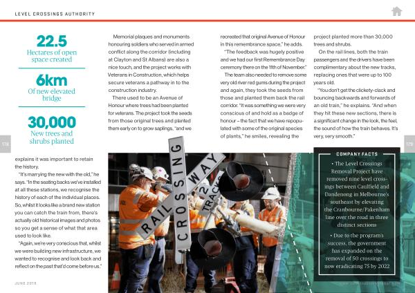 The team also needed to remove some very old river red gums during the project and again , they took the seeds from those and planted them back the rail corridor . “ It was something we were very conscious of and hold as a badge of honour – the fact that we have repopulated with some of the original species of plants ,” he smiles , revealing the project planted more than 30,000 trees and shrubs .