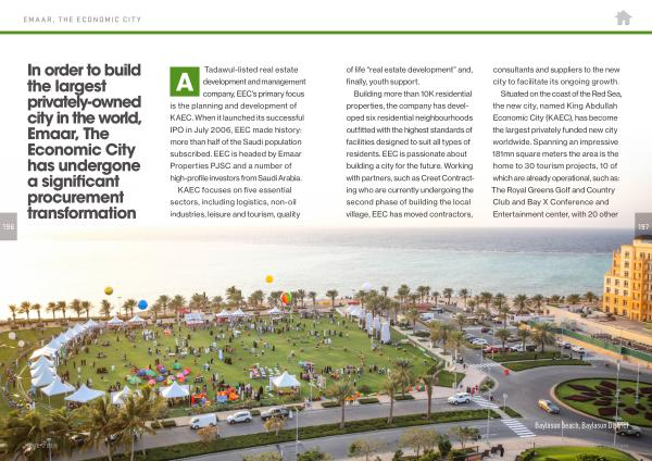 Situated on the coast of the Red Sea , the new city , named King Abdullah Economic City ( KAEC ), has become the largest privately funded new city worldwide . Spanning an impressive 181mn square meters the area is the home to 30 tourism projects , 10 of which are already operational , such as : The Royal Greens Golf and Country Club and Bay X Conference and Entertainment center , with 20 other