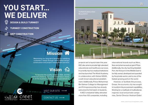 199 projects set to launch later this year . EEC also aims to provide high-standard educational and healthcare services . It currently has two medical institutions and has launched The World Academy in collaboration with Global GEMS , a well-known educational establishment . Additionally , Prince Mohammad Bin Salman Collage for Management and Entrepreneurship has already welcomed its first batch of students .