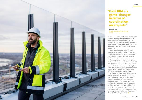 3D Repo is currently working on several digital twin solutions with its clients . CEO and founder Dr Jozef Dobos is actively contributing to setting the standards in collaboration with the Digital Twin Hub at CDBB . 3D Repo also recently received an Epic MegaGrant from Unreal Engine to develop a new digital twin platform that can stream data into a running game , thus removing the need to bake in the assets . Download the free guide here
