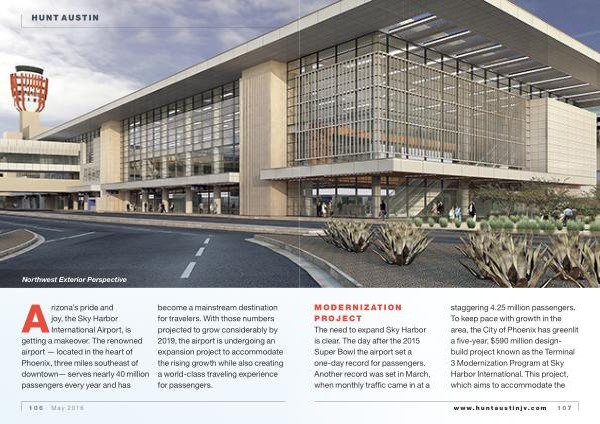 MODERNIZATION PROJECT The need to expand Sky Harbor is clear . The day after the 2015 Super Bowl the airport set a one-day record for passengers . Another record was set in March , when monthly traffic came in at a staggering 4.25 million passengers . To keep pace with growth in the area , the City of Phoenix has greenlit a five-year , $ 590 million designbuild project known as the Terminal 3 Modernization Program at Sky Harbor International . This project , which aims to accommodate the