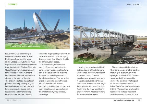 Moving from the heart of Perth to the gateway of Perth Airport , Civmec has recently undertaken important parts of the road development around the airport . It has also delivered significant fabrication work at the new Virgin Australia terminal , a world-class facility and the most significant project in Perth Airport ’ s current $ 1 billion redevelopment .