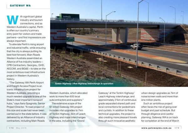 Gateway ’ at the Tonkin Highway / Leach Highway interchange , and approximately 21km of continuous grade separated shared path and local connections for pedestrians and cyclists . In addition to these technical upgrades , the project is also creating more pleasant travels through such innovative aesthetic urban design upgrades as 7km of noise / screen walls and more than one million plants .