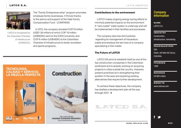LATCO is recognized by the Colombian Chamber of Infrastructure ( CAMACOL )