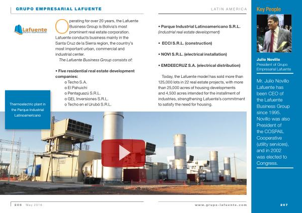 Operating for over 20 years , the Lafuente Business Group is Bolivia ’ s most prominent real estate corporation . Lafuente conducts business mainly in the Santa Cruz de la Sierra region , the country ’ s most important urban , commercial and industrial center .