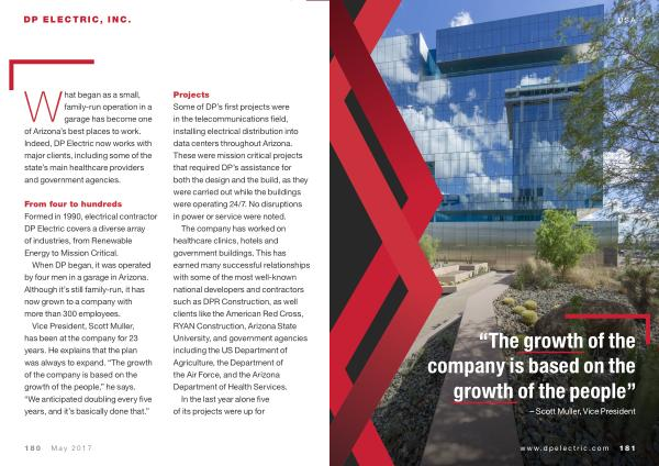 What began as a small , family-run operation in a garage has become one of Arizona ’ s best places to work . Indeed , DP Electric now works with major clients , including some of the state ’ s main healthcare providers and government agencies .