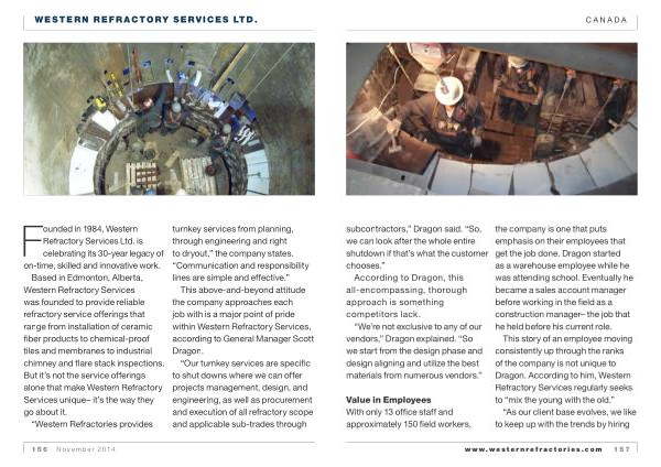 This story of an employee moving consistently up through the ranks of the company is not unique to Dragon . According to him , Western Refractory Services regularly seeks to “ mix the young with the old .”