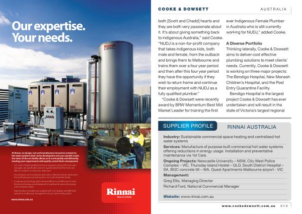 “ Cooke & Dowsett were recently award by BRW Momentum Best Mid Market Leader for training the first ever Indigenous Female Plumber in Australia who is still currently working for NUDJ ,” added Cooke .