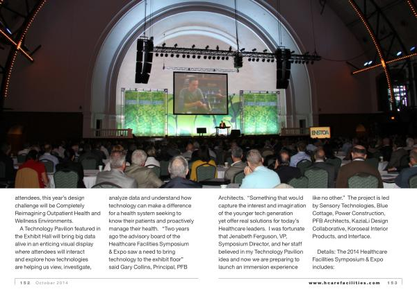 Architects . “ Something that would capture the interest and imagination of the younger tech generation yet offer real solutions for today ’ s Healthcare leaders . I was fortunate that Jenabeth Ferguson , VP , Symposium Director , and her staff believed in my Technology Pavilion idea and now we are preparing to launch an immersion experience like no other .” The project is led by Sensory Technologies , Blue Cottage , Power Construction , PFB Architects , KaziaLi Design Collaborative , Koroseal Interior Products , and Interface .