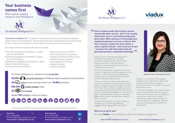 The Market Intelligence Co . assists Viadux in increasing its customer and employee engagement ( including NPS ® and e-NPS ® ).