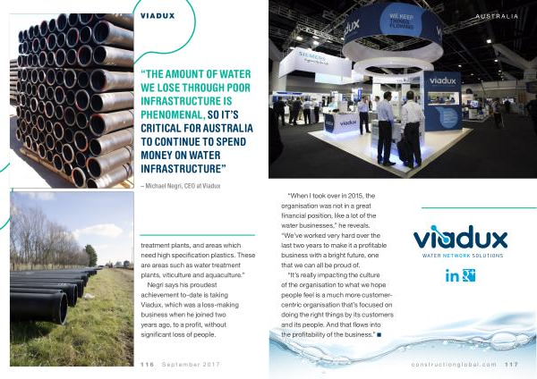 “ THE AMOUNT OF WATER WE LOSE THROUGH POOR INFRASTRUCTURE IS PHENOMENAL , SO IT ’ S CRITICAL FOR AUSTRALIA TO CONTINUE TO SPEND MONEY ON WATER INFRASTRUCTURE ”