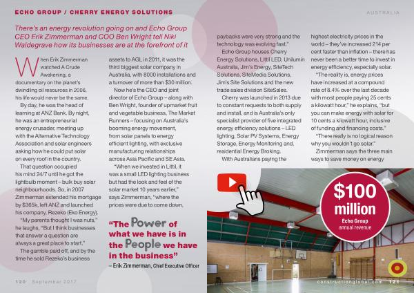 Echo Group houses Cherry Energy Solutions , Littil LED , Unilumin Australia , Jim ’ s Energy , SiteTech Solutions , SiteMedia Solutions , Jim ’ s Site Solutions and the new trade sales division SiteSales .