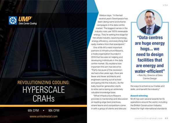 One of M + W ’ s most important partners is Infrastructure Masons , a trade organisation founded in 2016 that focuses on helping and developing individuals in the data centre market . Sty explains how important this aim has become : “ Partly because of the recession we had a few years ago , there are fewer and fewer architects and engineers coming out of school and going into the industry . As the baby boomer generation starts to retire we ’ re losing an extremely valuable knowledge base .