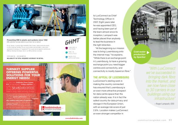 CONSTRUCTION to LuxConnect as Chief Technology Officer in 2007 . Eight years later he was appointed CEO , and having been part of the team almost since its inception , Lampach was better placed than anybody to lead the business in the right direction .