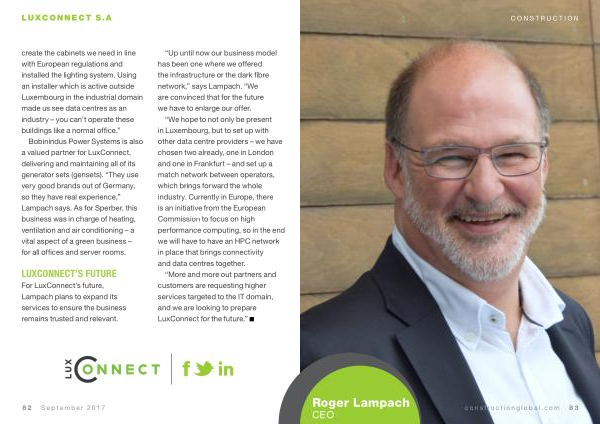 “ More and more out partners and customers are requesting higher services targeted to the IT domain , and we are looking to prepare LuxConnect for the future .” 82 September 2017